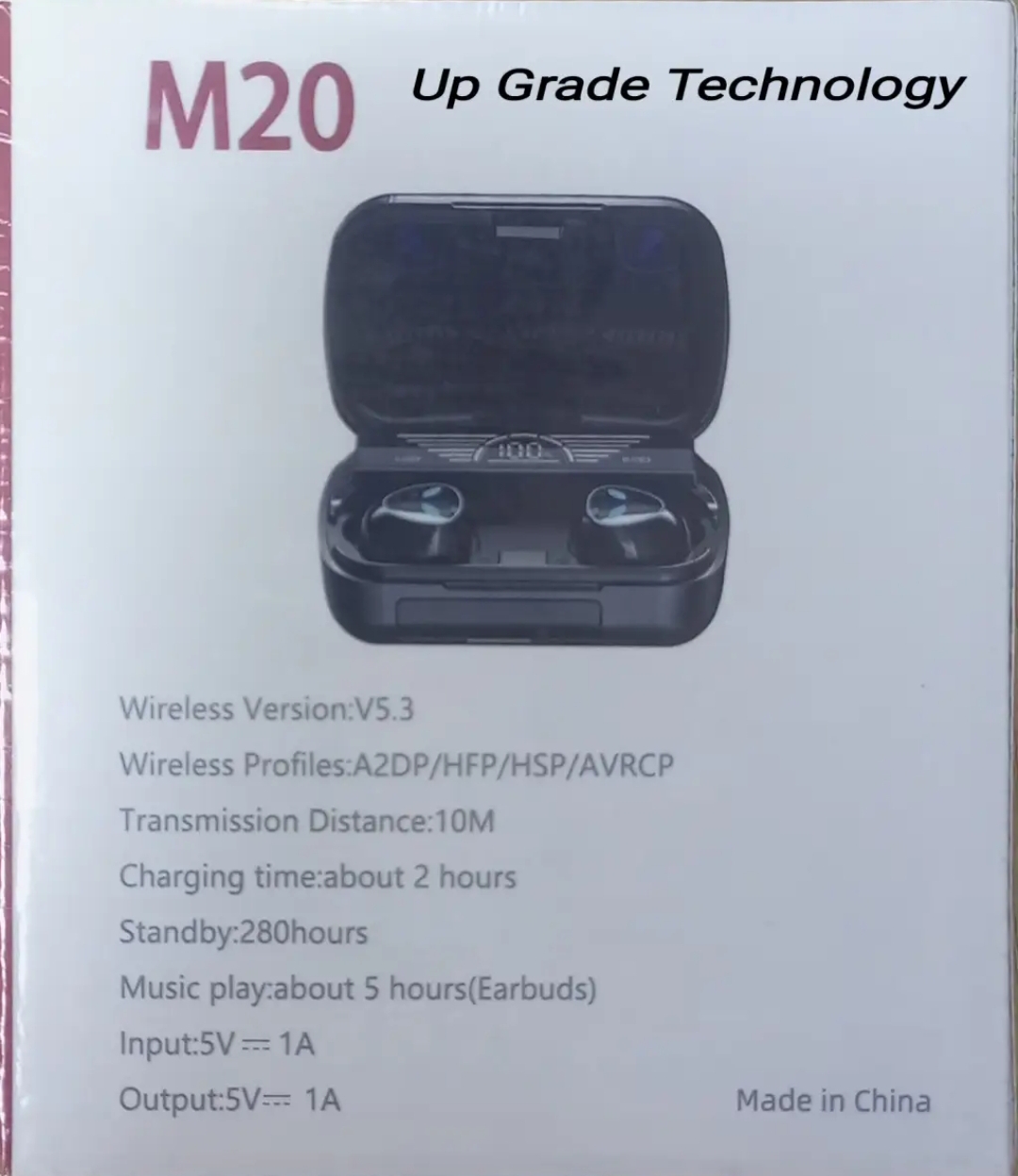 The M20 Damix Earbuds are a cutting-edge pair of true wireless stereo (TWS) earphones designed for the modern audiophile and active lifestyle enthusiast. Featuring the latest Bluetooth 5.3 technology, these earbuds ensure a seamless and stable connection, allowing you to enjoy your favorite music and podcasts without interruption. The ergonomic in-ear design provides a secure fit, making them perfect for sports and outdoor activities, while the lightweight construction ensures comfort during extended wear. With impressive sound quality, the M20 Damix Earbuds deliver rich bass and crystal-clear highs, enhancing your listening experience. Additionally, the built-in microphone allows for hands-free calls, and the long-lasting battery life ensures that you can enjoy hours of playback on a single charge. Whether you're hitting the gym or commuting, the M20 Damix Earbuds are the ideal companion for anyone seeking high-performance audio in a stylish and portable package.
