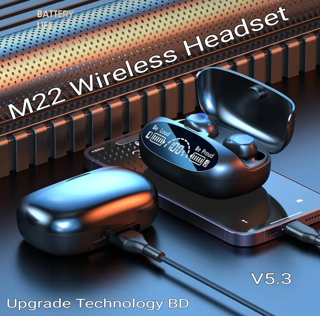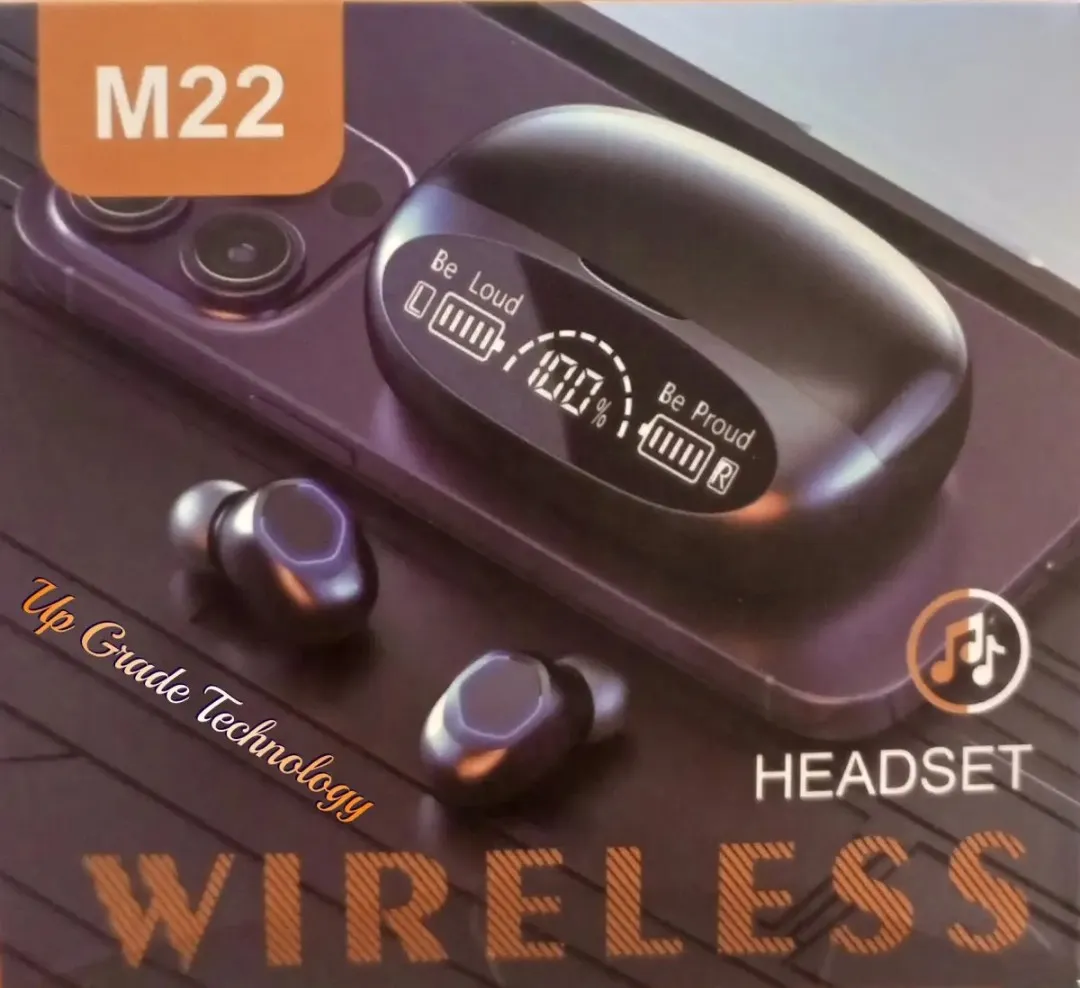 1. Elevate your listening experience with the M22 Tws Wireless Headphones, designed to deliver crystal clear stereo music directly into your ears. These earplugs feature 9D noise reduction technology, ensuring that you can enjoy your favorite tunes without any distractions or interruptions.