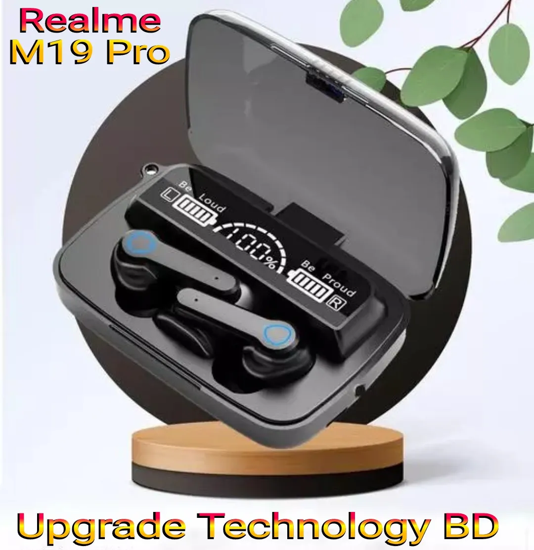 • Designed for a more comfortable fit The 5.2 chip manages battery life very well. Using CVC8.0 (NO Digital Noise Reduction Technology). Wireless connections Bluetooth: 5.2. Realme M19 Pro Wireless Bluetooth Ear-buds TWS Earphone Wireless Bluetooth 5.2 Touch Control Headphones with Mic Waterproof With Flashlight Function. Wireless Bluetooth earphone: waterproof and sweat-proof. Exercise without sweat. Realme TWS M19 Pro Air-pod same as M19 Wireless Bluetooth 5.2 Ear-buds Finger Touch Control - LED Display lights Sport Earphones Headphones with 2000mAh Battery.