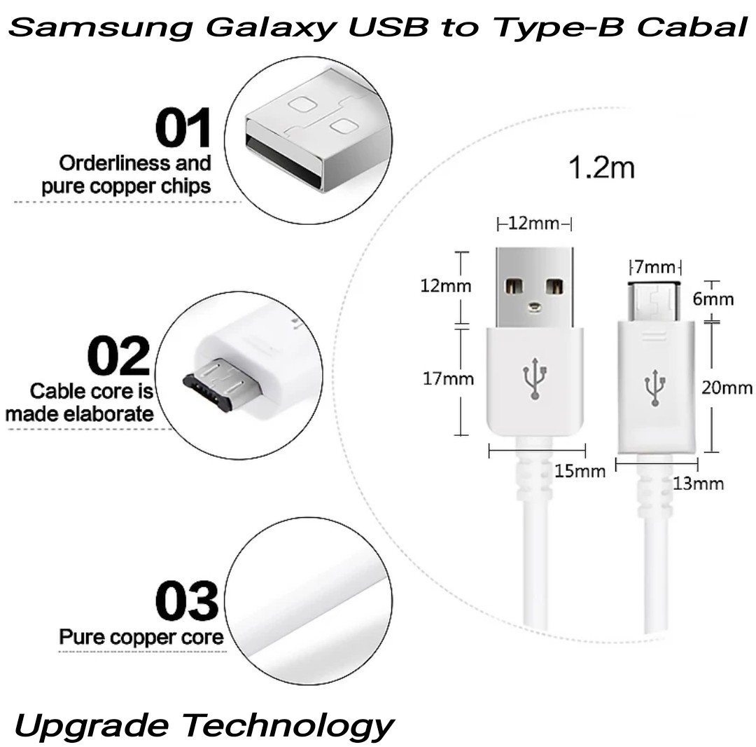 with Data Transmission Cable 1.2M for Galaxy all Models with Type-B Charging